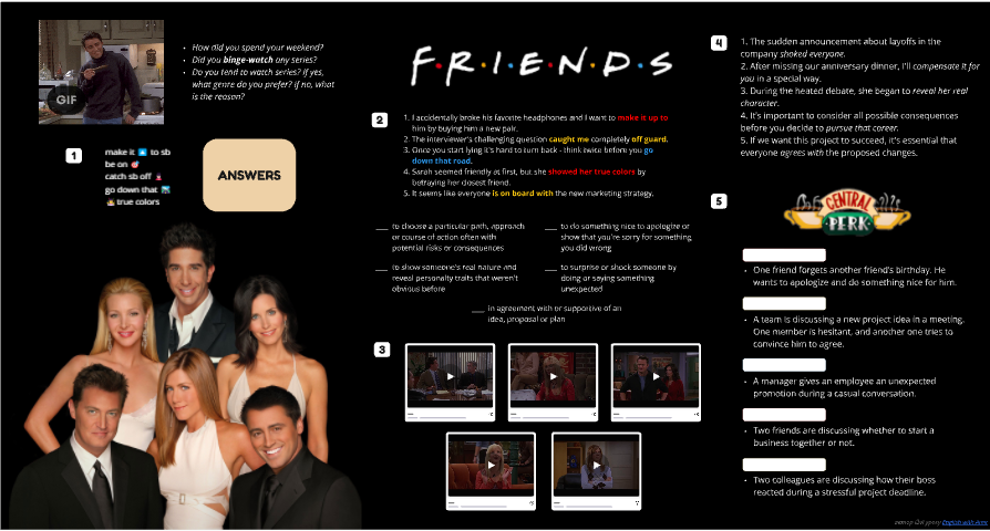 Vocabulary lesson that includes watching parts of the episodes, speaking and vocabulary practice